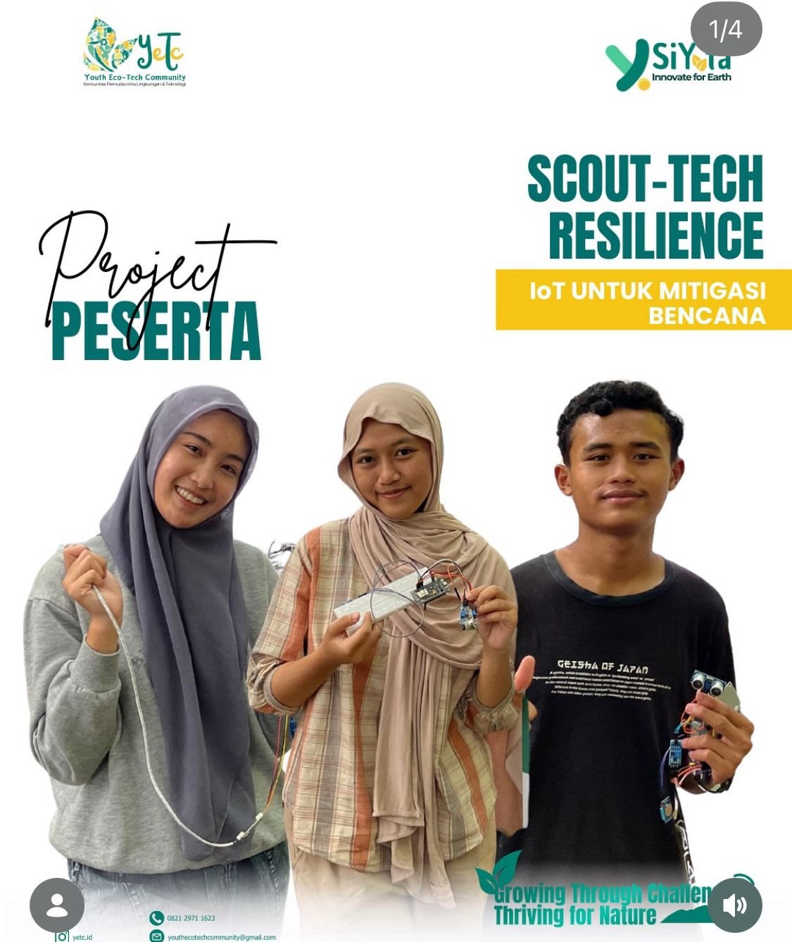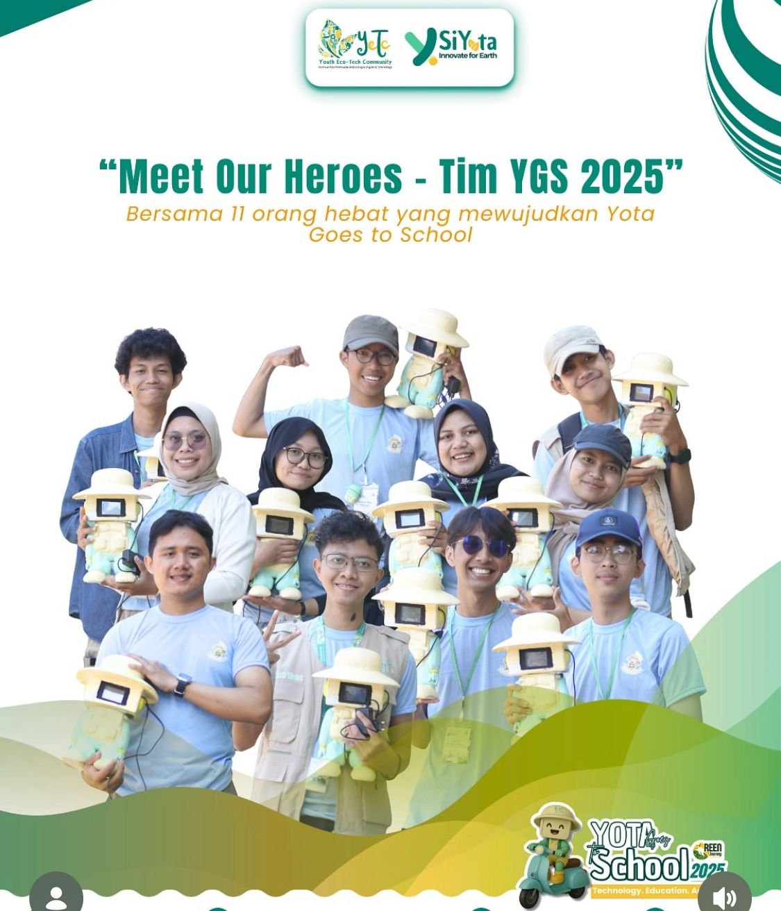 Lokasi: Kabupaten Bandung, Kabupaten Garut, dan Kabupaten Cianjur The YOTA Goes to School program introduced technology-based educational innovations for children and schools. Activities included distributing 117 physical books to 55 schools and educational institutions across Bandung, Garut, and Cianjur, and publishing 1 digital e-book read by 645 readers via FlipHTML. Children also engaged with 4 educational boardgames, tested 7 YOTA robot demo products, and interacted with 1 chatbot product. The program reached 30 children through direct education, plus 99 additional children, and 2 schools received direct educational sessions. A total of 15 young people, including volunteers, actively participated. As part of environmental action, 100 trees were replanted, each equipped with long-distance ID tracking for sustainable monitoring.