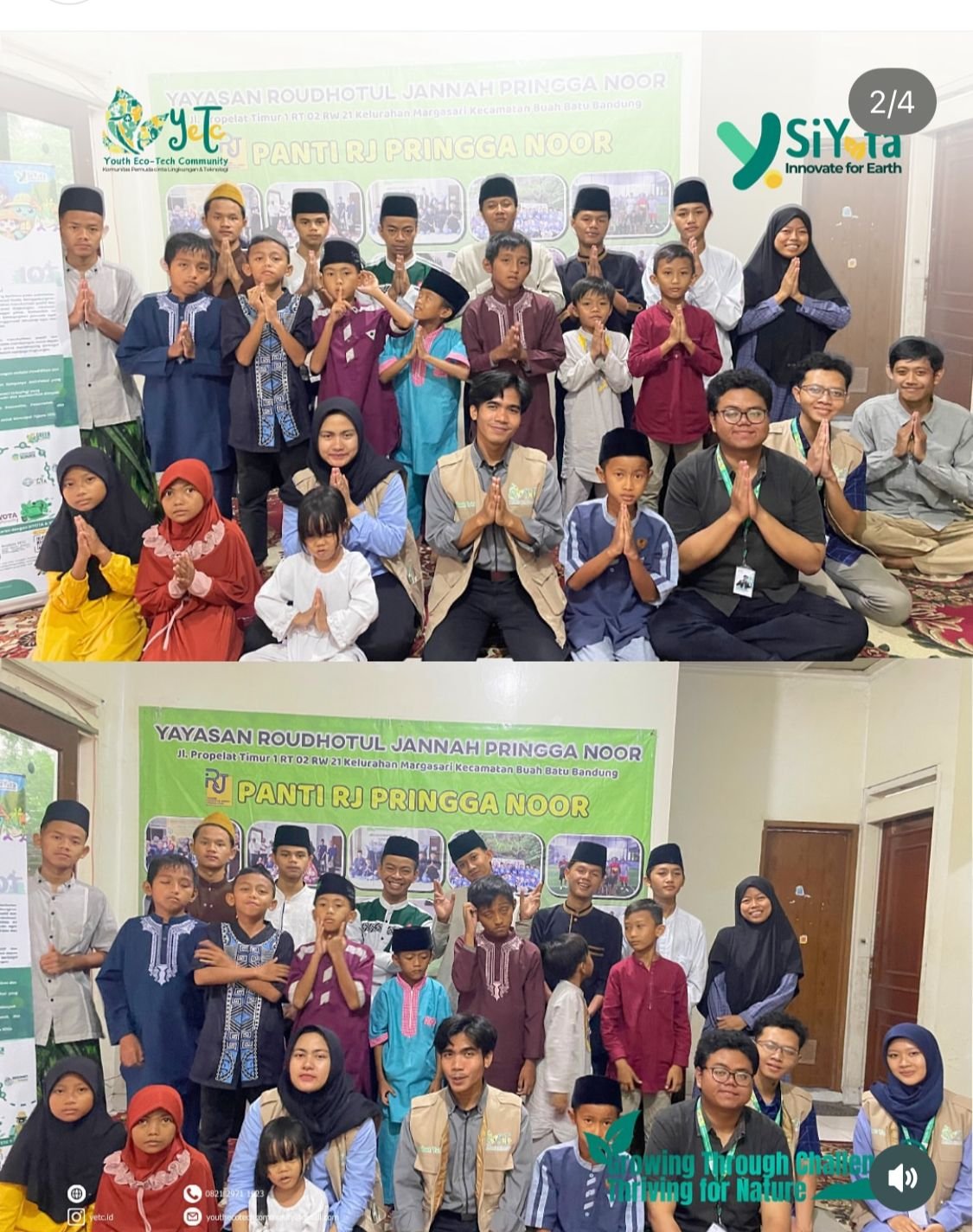 Lokasi: Kabupaten Bandung, Kabupaten Garut, dan Kabupaten Cianjur The YOTA Goes to School program introduced technology-based educational innovations for children and schools. Activities included distributing 117 physical books to 55 schools and educational institutions across Bandung, Garut, and Cianjur, and publishing 1 digital e-book read by 645 readers via FlipHTML. Children also engaged with 4 educational boardgames, tested 7 YOTA robot demo products, and interacted with 1 chatbot product. The program reached 30 children through direct education, plus 99 additional children, and 2 schools received direct educational sessions. A total of 15 young people, including volunteers, actively participated. As part of environmental action, 100 trees were replanted, each equipped with long-distance ID tracking for sustainable monitoring.